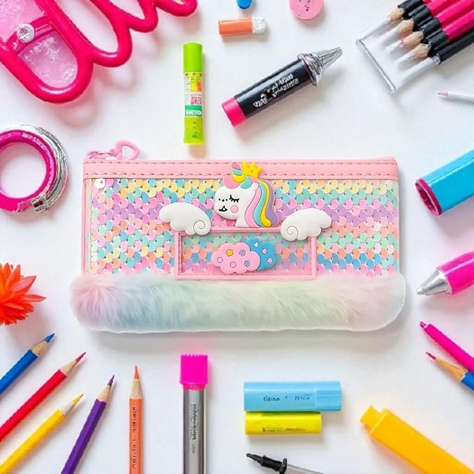 - Cute Unicorn Design – Attractive pastel unicorn pouch with rainbow sequins, crown & fluffy fur, loved by girls & kids.