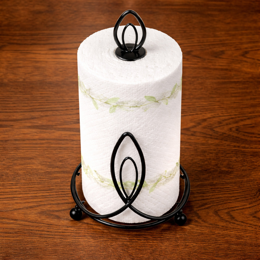 Bring style and functionality to your space with this beautifully crafted Metal Black Paper Towel Holder. Designed in an elegant candle shape, this decorative wrought iron tissue roll stand enhances the look of your kitchen, bathroom, dining table, office, or outdoor setup while keeping paper towels neatly organized.