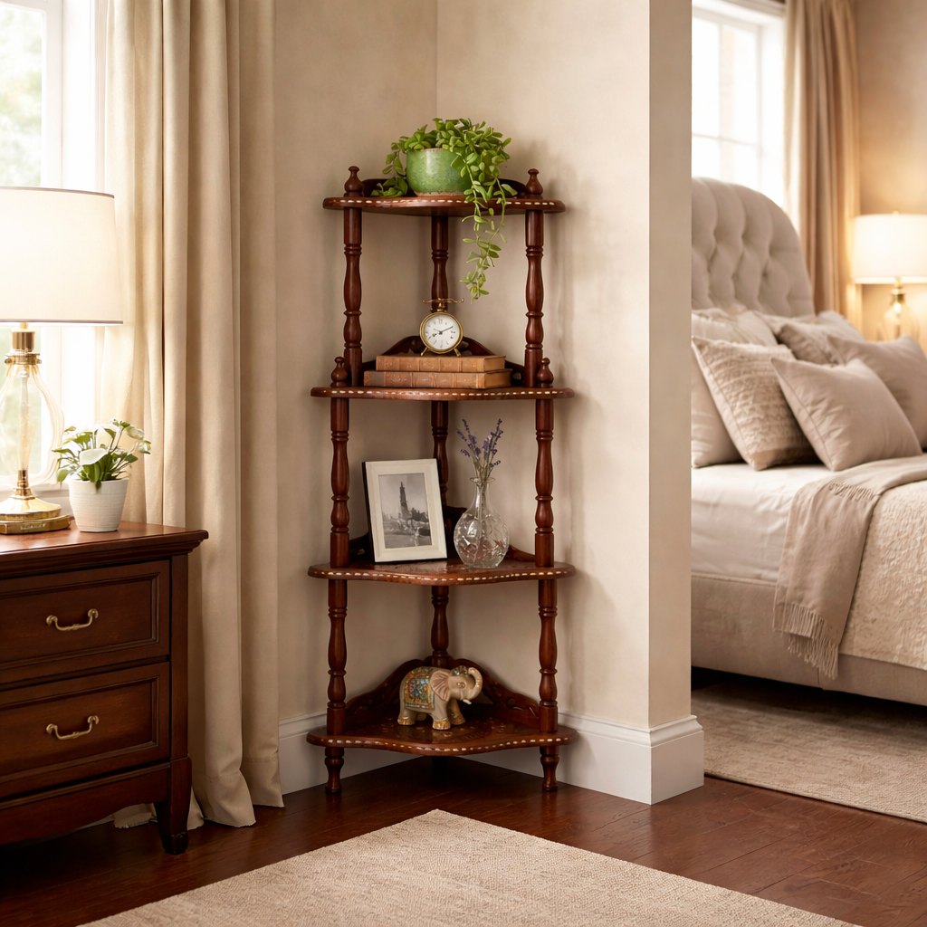 Enhance your home with this beautifully crafted Wooden Handmade 4-Tier Corner Shelf, designed to add elegance and functionality to any unused corner space. Made from high-quality solid wood, this stylish corner stand offers a perfect blend of durability, traditional craftsmanship, and modern utility.